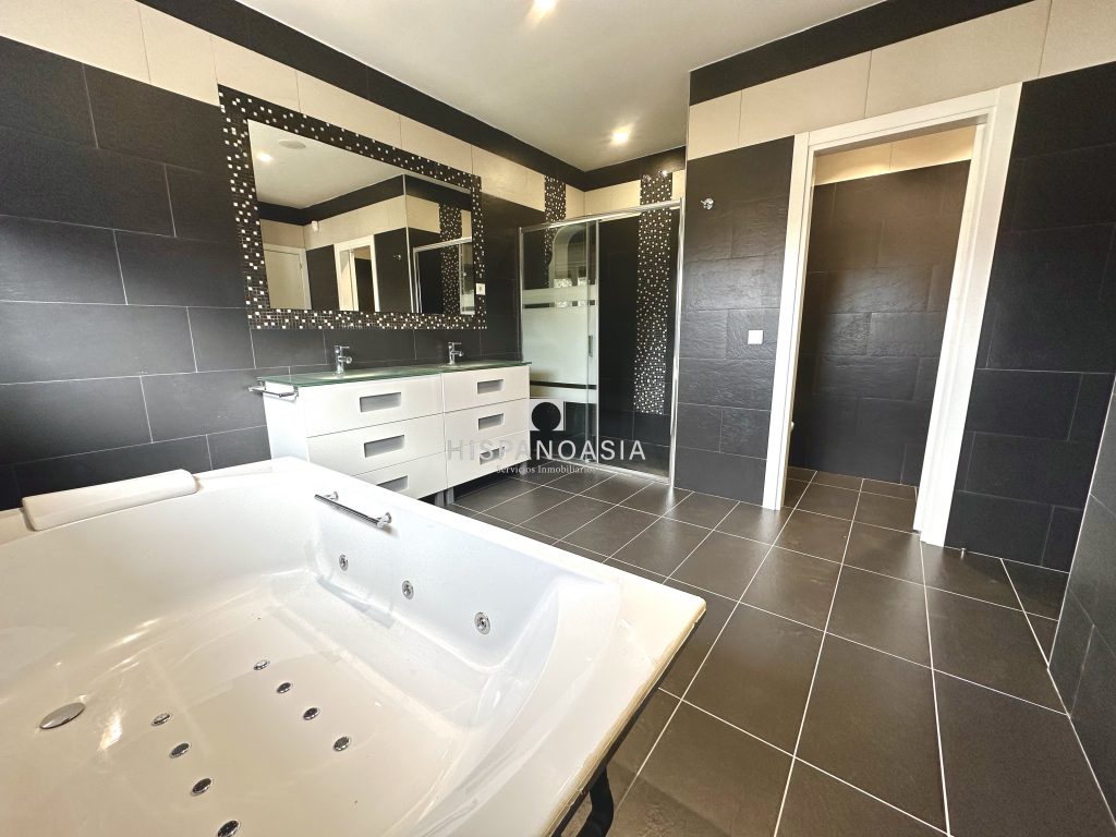 Realizamos una redistribución completa de los elementos principales del cuarto de baño de la suite. Empleamos materiales de máxima calidad como mármol y madera de caoba procesada. Rediseñamos la iluminación y conseguimos crear un espacio único
